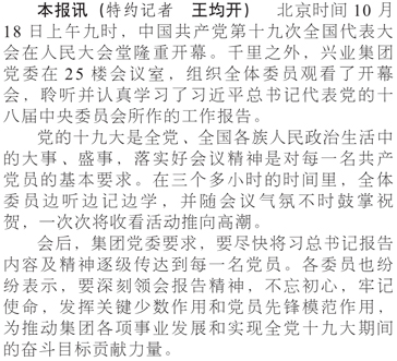 集團黨委組織集中收看黨的十九大開幕會