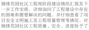 嵐山區(qū)領(lǐng)導(dǎo)到錦繡花園社區(qū)工程檢查指導(dǎo)