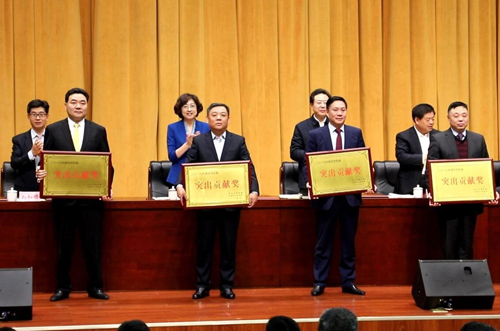 本報(bào)訊(記者 張守艷)1月6日,市委經(jīng)濟(jì)工作會(huì)議召開。市委書記張惠,市委副書記、市長(zhǎng)李永紅出席會(huì)議并講話。市人大常委會(huì)主任劉加順,市政協(xié)主席王斌出席。市委常委、副市長(zhǎng)劉兆亮宣讀了《市委辦公室、市政府辦公室關(guān)于對(duì)2019年繳納地方稅收過千萬(wàn)元企業(yè)進(jìn)行表?yè)P(yáng)的通報(bào)》。會(huì)議對(duì)獲得2019年“經(jīng)濟(jì)發(fā)展功勛企業(yè)”“經(jīng)濟(jì)發(fā)展突出貢獻(xiàn)獎(jiǎng)”“經(jīng)濟(jì)發(fā)展貢獻(xiàn)獎(jiǎng)”的企業(yè)進(jìn)行了表彰。日照興業(yè)集團(tuán)被授予“經(jīng)濟(jì)發(fā)展突出貢獻(xiàn)獎(jiǎng)”,集團(tuán)董事長(zhǎng)丁杰上臺(tái)領(lǐng)獎(jiǎng)。